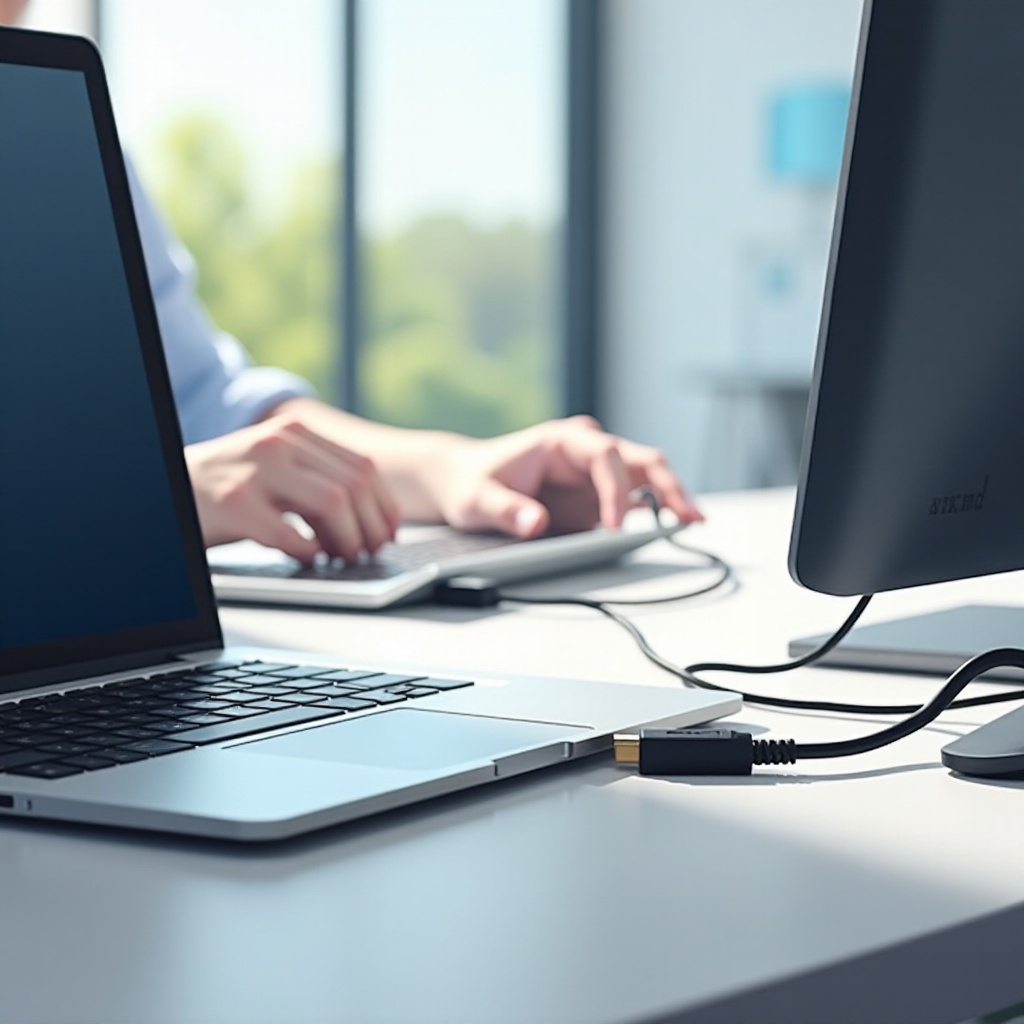 - إعداد HDMI و DisplayPort: تتيح لك هذه الاتصالات دمج العرض بوضوح. قم بتوصيل الكابل المناسب من جهاز اللابتوب إلى شاشة الكمبيوتر المكتبي واضبط الإعدادات في تفضيلات عرض اللابتوب وفقًا لذلك.
