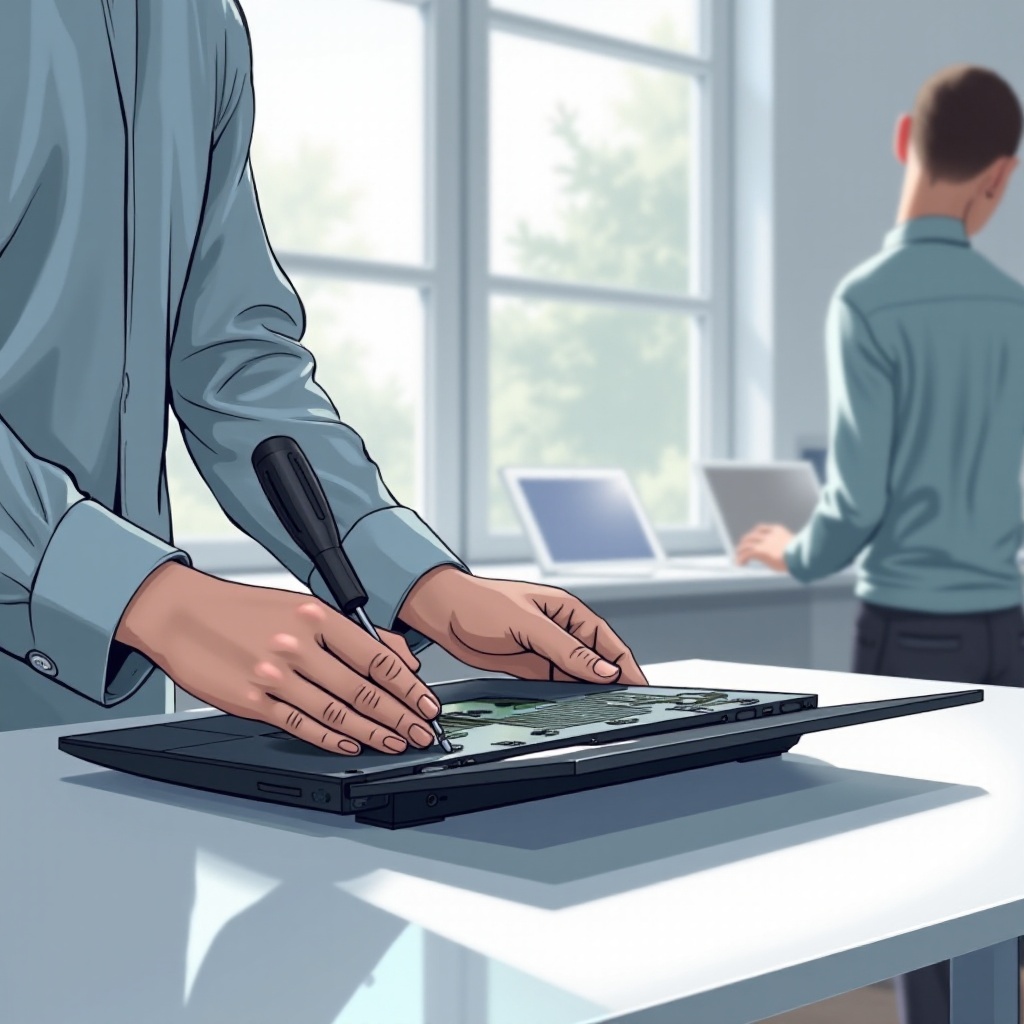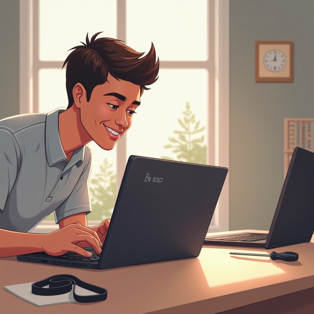 مع فتح اللاب توب الخاص بك، أنت جاهز للمضي قدماً في الصيانة أو الترقيات. تعامل مع جميع المكونات بحذر لتجنب أي ضرر.