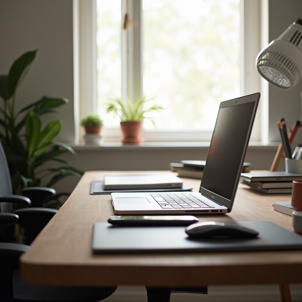 يُحَسِّن إعداد سطح المكتب المصمم بشكل جيد لجهاز اللابتوب كلاً من الإنتاجية والراحة. تشكل الأدوات المريحة، والتحسين البصري، والتوصيل الفعال، واللمسات الشخصية بيئة عمل متماسكة تحفز وتدعم المهام اليومية.